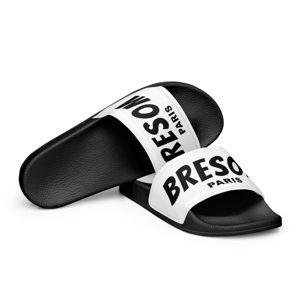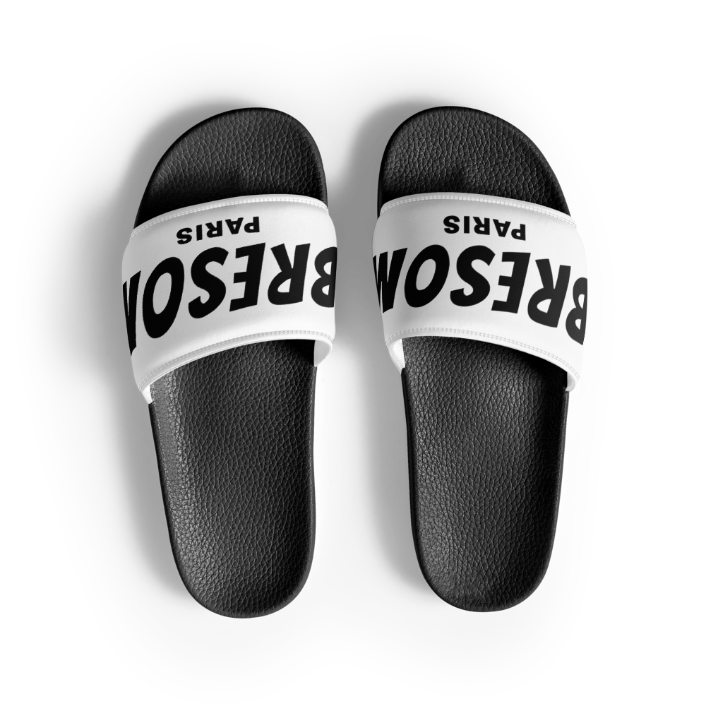 Avec leur sangle blanche frappée du logo BRESOM PARIS, ces claquettes imposent leur style dès le premier regard. Conçues pour allier confort brut et présence affirmée, elles se portent aussi bien en ville qu’en détente, toujours avec intention.