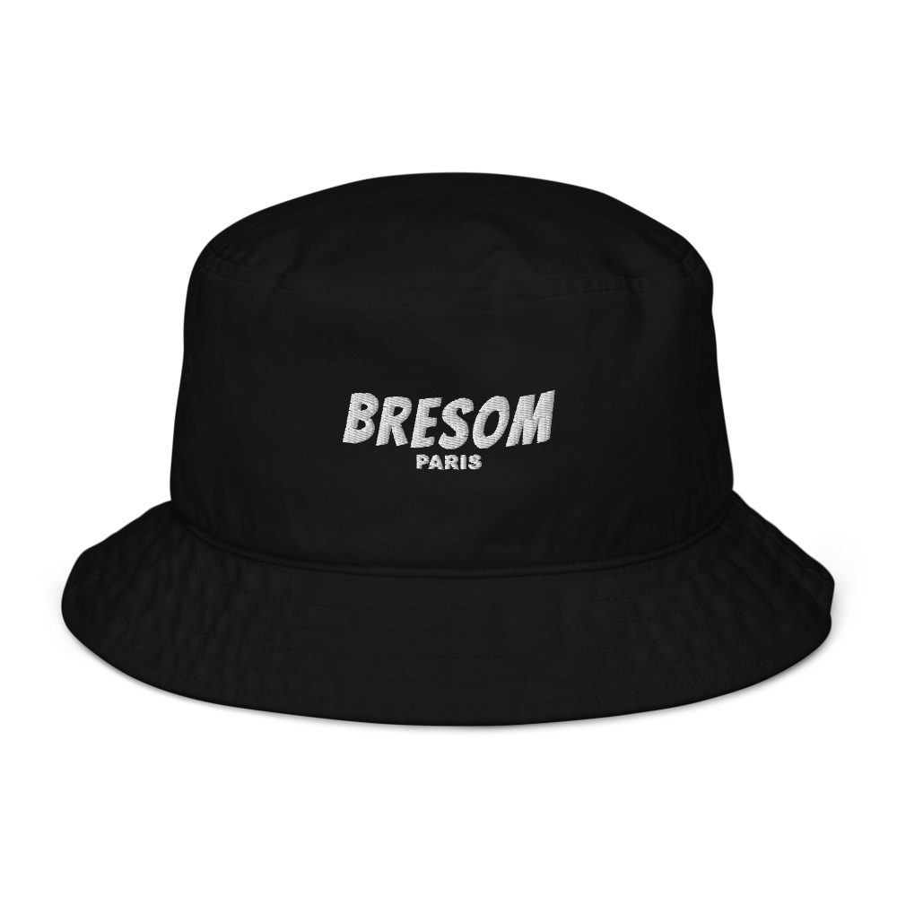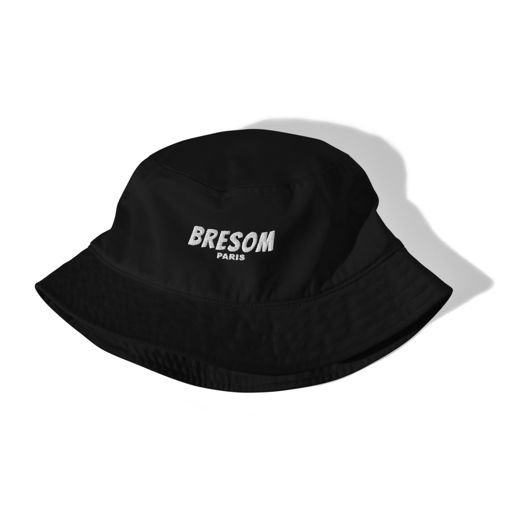 Ce bob doux et respirant, allie minimalisme et conscience. Avec sa broderie blanche « BRESOM PARIS » sur fond noir profond, il s’impose sans crier. Une pièce forte dans un design simple.